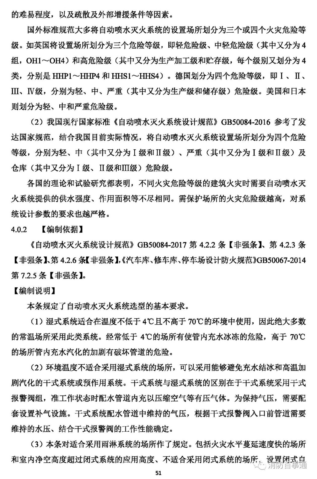 4.0.1 工業(yè)和民用建筑內(nèi)的自動噴水滅火系統(tǒng),其噴水強度、作用面積、噴頭工作壓力、噴頭間距等參數(shù)應與其火災危險等級、室內(nèi)凈空高度等相適應。