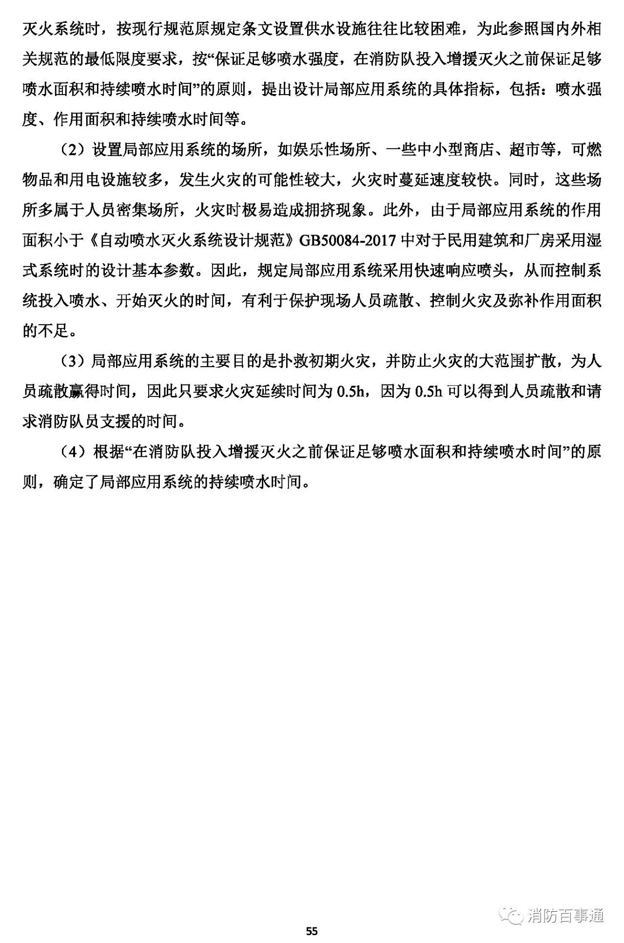 4.0.9 建筑中局部應用系統(tǒng)保護區(qū)域內(nèi)的房間和走道均應布置快速響應噴頭,噴水強度不應低于6L/min·㎡,持續(xù)噴水時間不應低于0.5h。