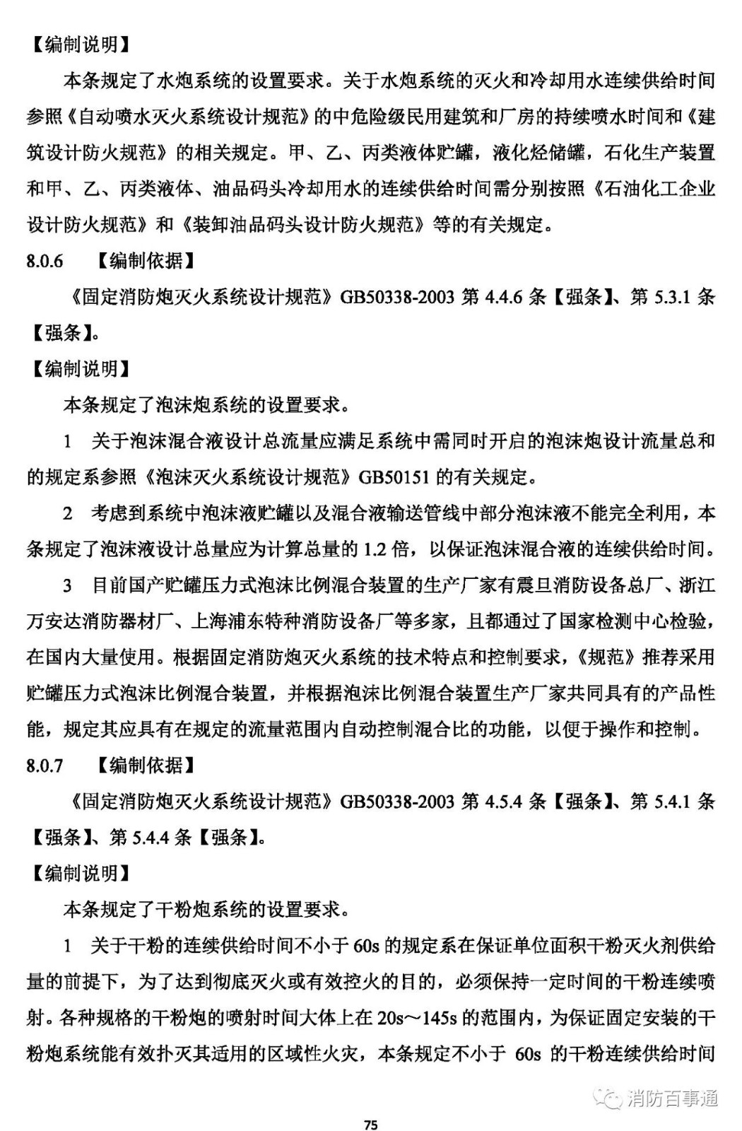 4 用于撲救非水溶性可燃液體火災的泡沫-水噴淋系統(tǒng)、泡沫槍系統(tǒng)、泡沫炮系統(tǒng),其水成膜泡沫液在緩釋放時的抗燒時間不應小于10min.;