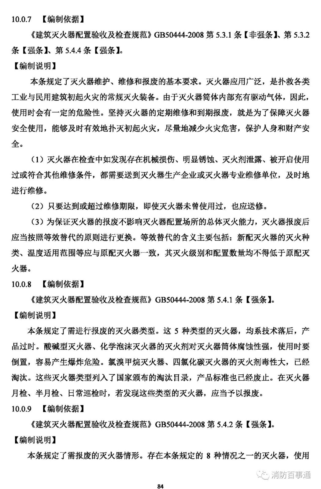10.0.8 滅火器應按規(guī)定定期維護、維修和報廢。滅火器報廢后,應按照等效替代的原則進行更換。