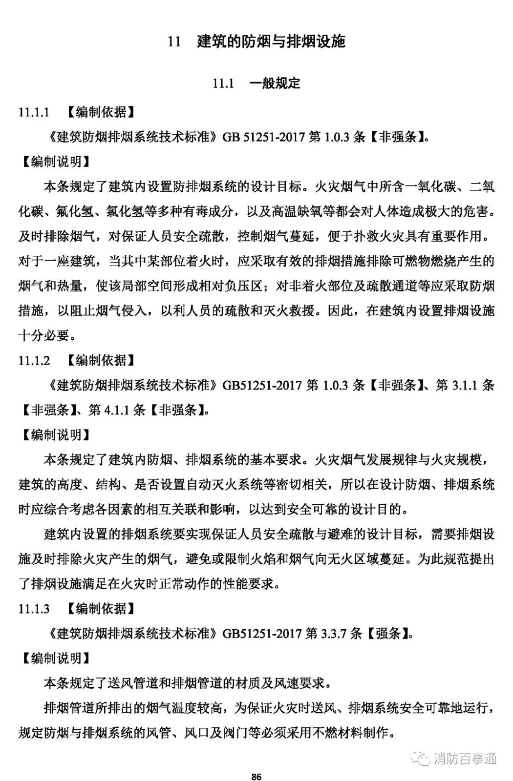 11.1.1 建筑內(nèi)的防煙和排煙系統(tǒng)應能有效控制建筑內(nèi)火災煙氣的流動與蔓延,保障建筑內(nèi)的人員安全疏散,并應有利于滅火救援。