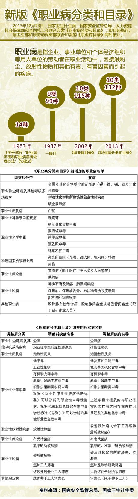 摘要: 2013年12月23日,國家衛(wèi)生計(jì)生委、國家安全監(jiān)管總局、人力資源社會(huì)保障部和全國總工會(huì)聯(lián)合印發(fā)《職業(yè)病分類和目錄》,即日起施行。原衛(wèi)生部和原勞動(dòng)保障部聯(lián)合印發(fā)的《職業(yè)病目錄》同時(shí)廢止。