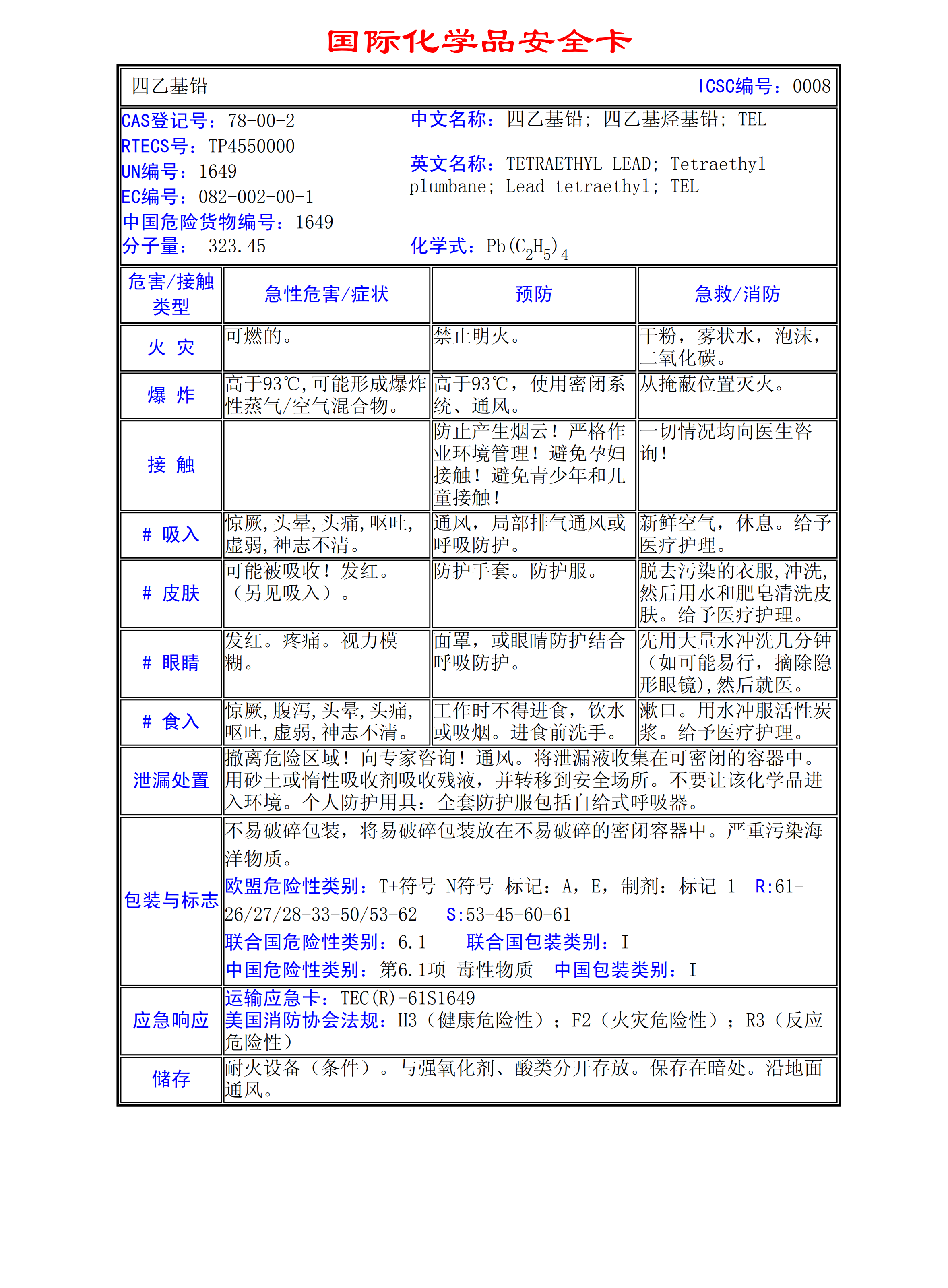 四乙基鉛MSDS