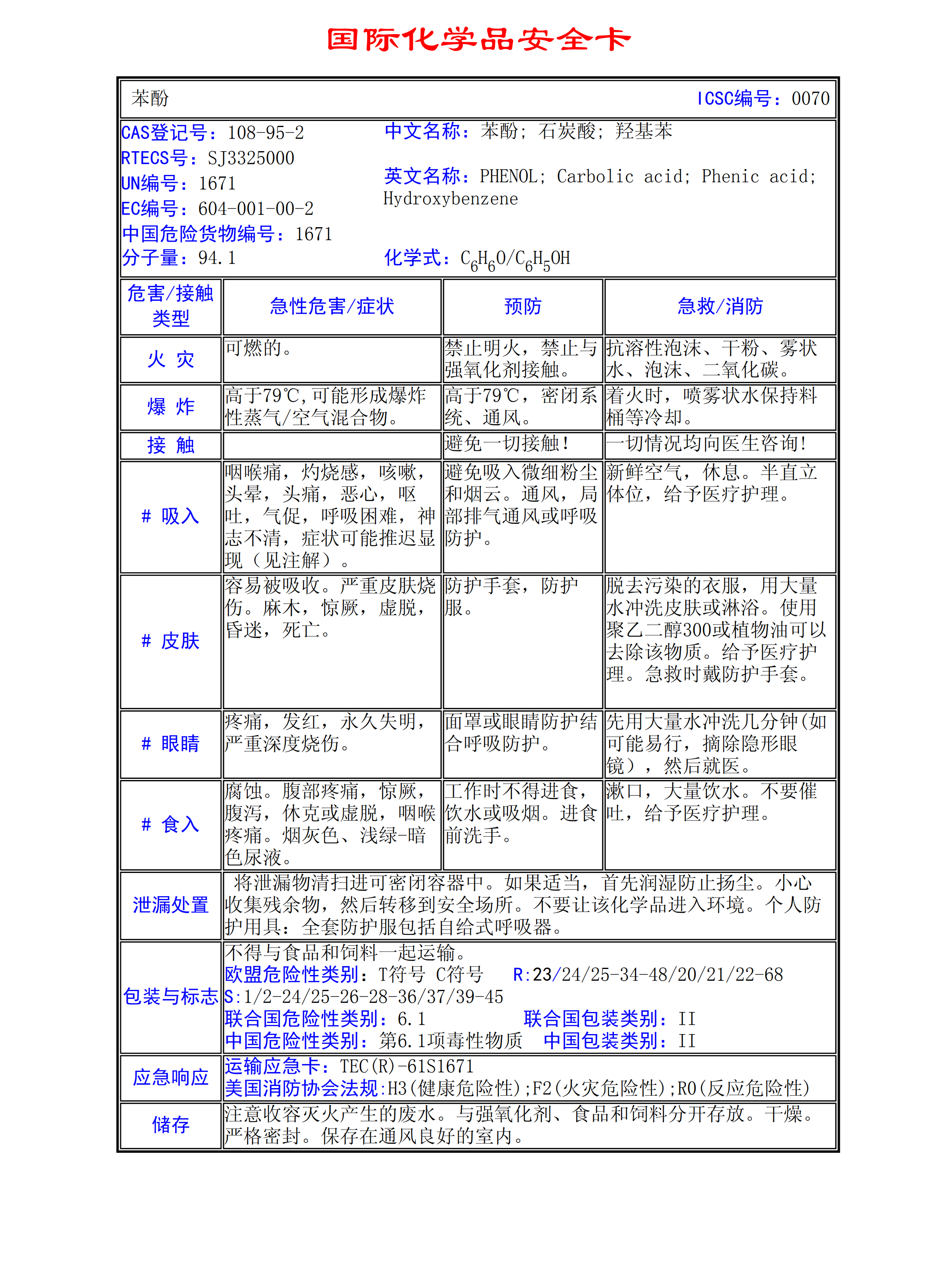 苯酚MSDS