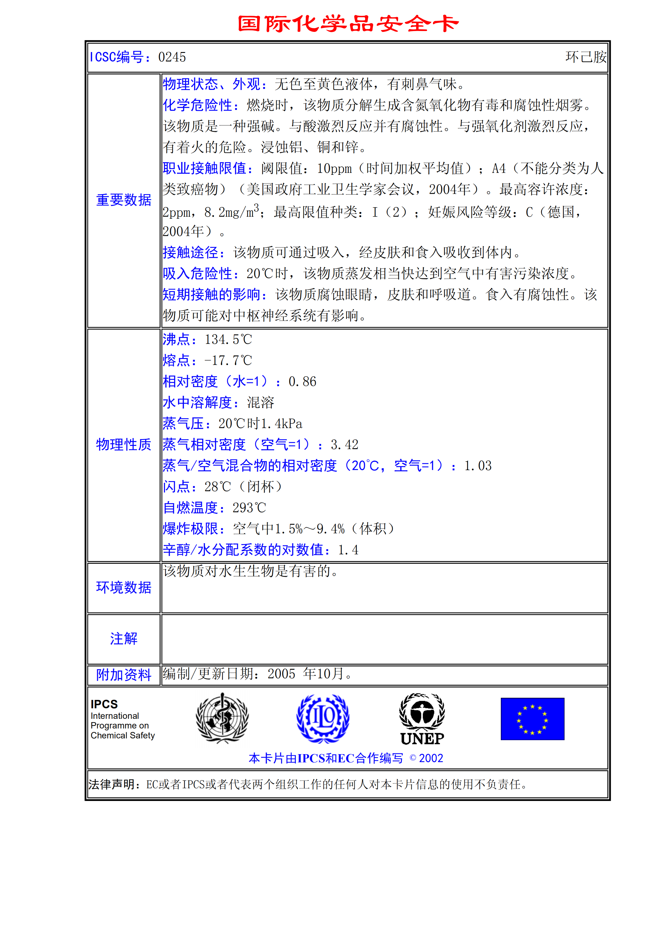 環(huán)己胺MSDS