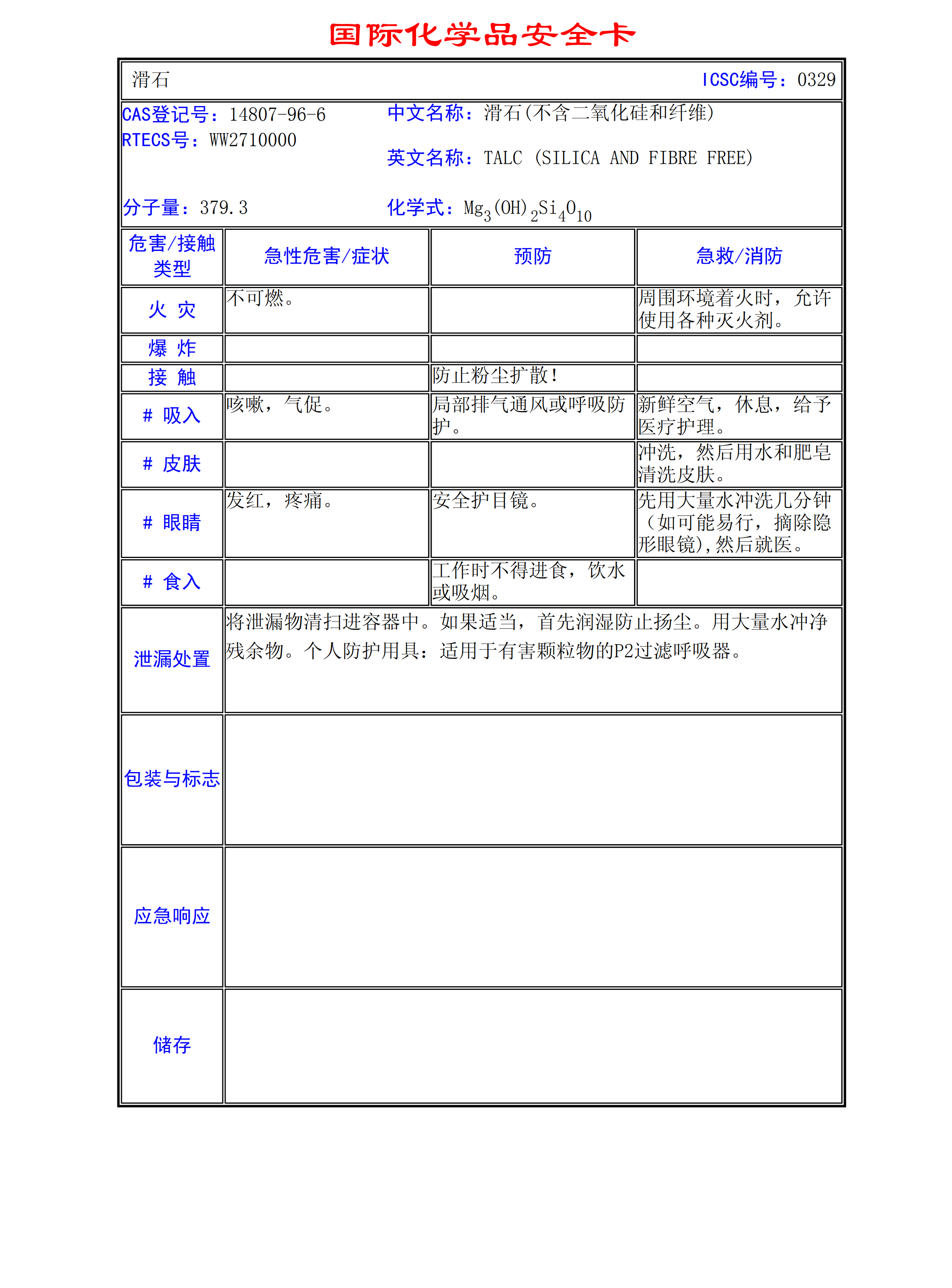 滑石MSDS