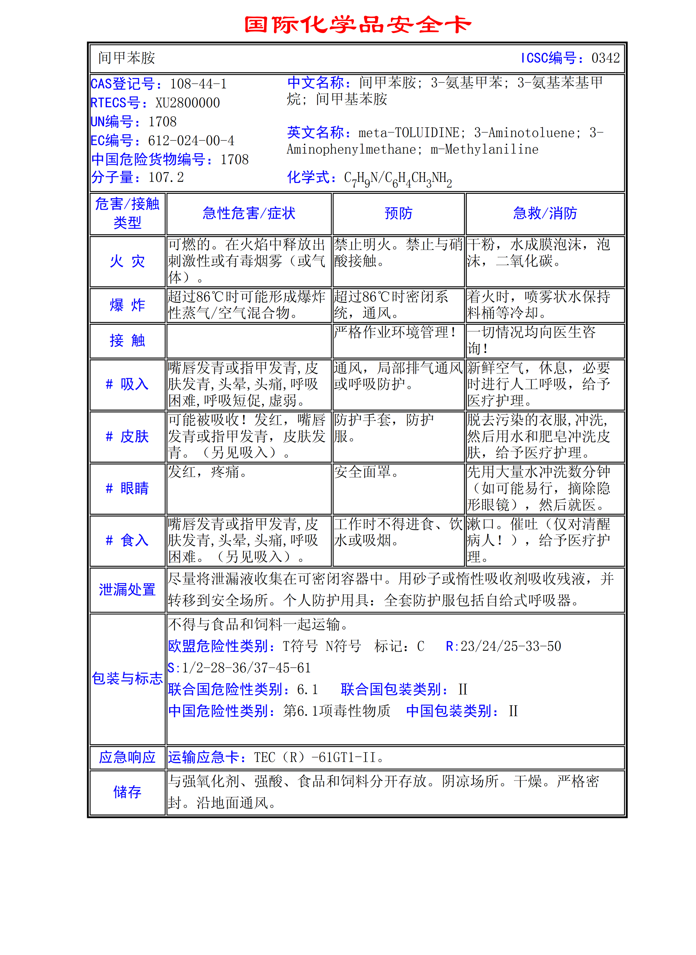 間甲苯胺MSDS