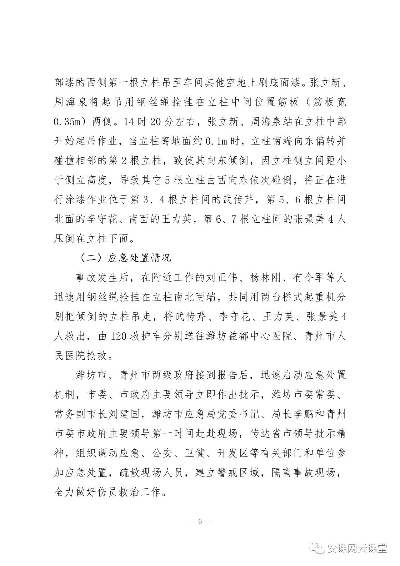 曹?chē)?guó)偉,中共黨員,通用起重機(jī)公司副總經(jīng)理,對(duì)生產(chǎn)過(guò)程中存在的安全隱患督促指導(dǎo)整改不力,違章指揮未經(jīng)安全教育培訓(xùn)的工人上崗作業(yè),對(duì)事故的發(fā)生負(fù)有主要責(zé)任。