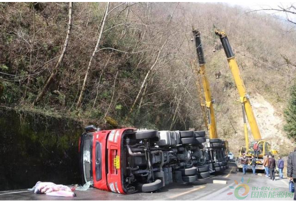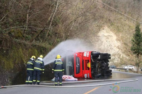 消防隊員10時48分到達現(xiàn)場,偵查發(fā)現(xiàn)天然氣槽車側翻在道路靠山體一旁。經偵察,事故車輛為一輛裝載22噸液化天然氣槽罐車側翻,事故發(fā)生后車內兩名司乘人員自行撤離出,身體并無大礙,車輛罐體表面無破損,未發(fā)生泄漏。